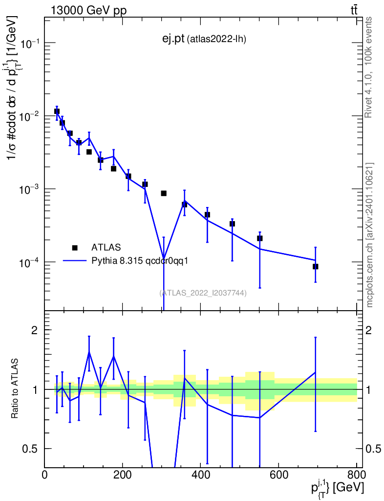 Lines: data, pythia8 8.315 qcdcr0qq1 |