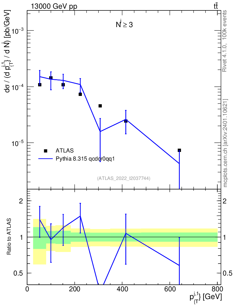 Lines: data, pythia8 8.315 qcdcr0qq1 |