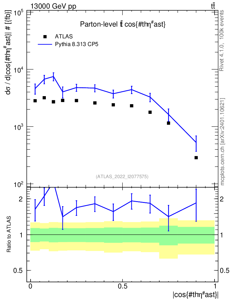 Plot of ttbar.thetaStar in 13000 GeV pp collisions