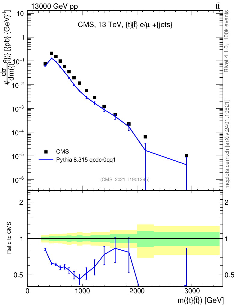 Lines: data, pythia8 8.315 qcdcr0qq1 |