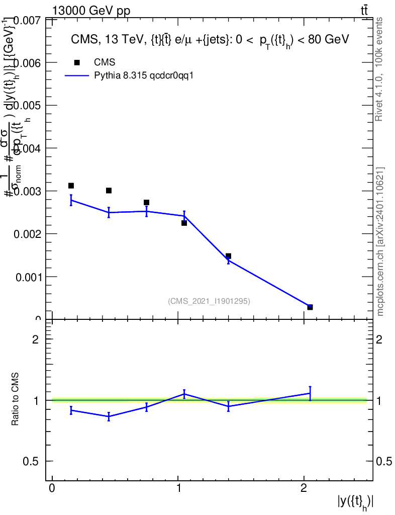 Lines: data, pythia8 8.315 qcdcr0qq1 |