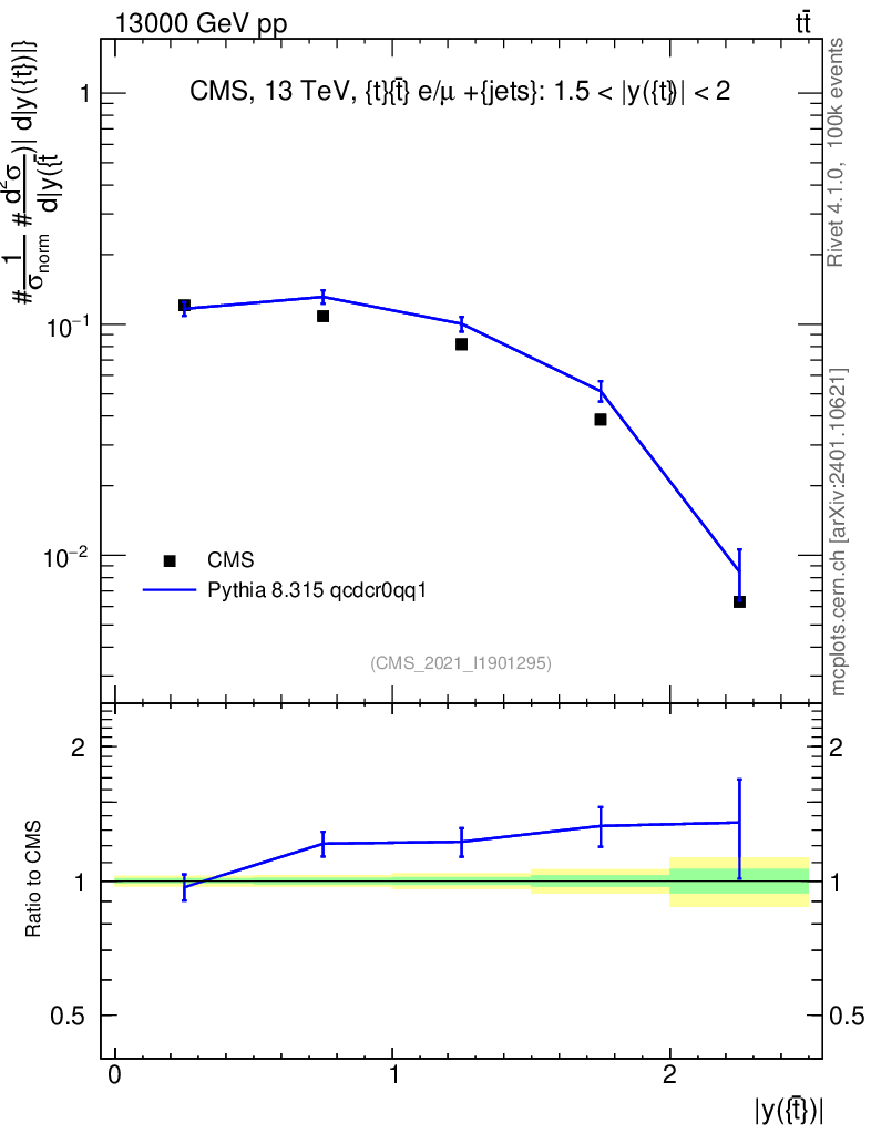 Lines: data, pythia8 8.315 qcdcr0qq1 |