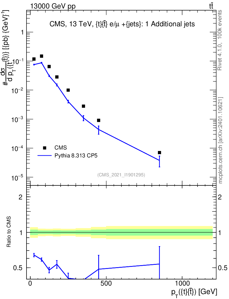 Lines: data, pythia8 8.313 CP5 |