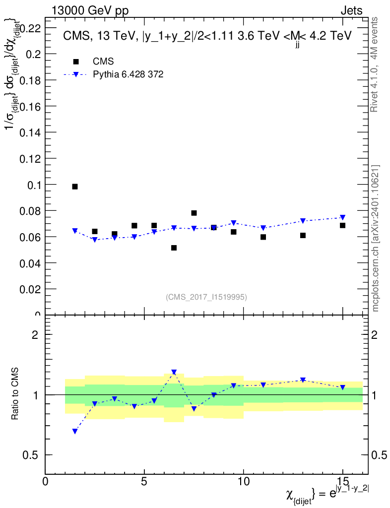 Lines: data, pythia6 6.428 372 |