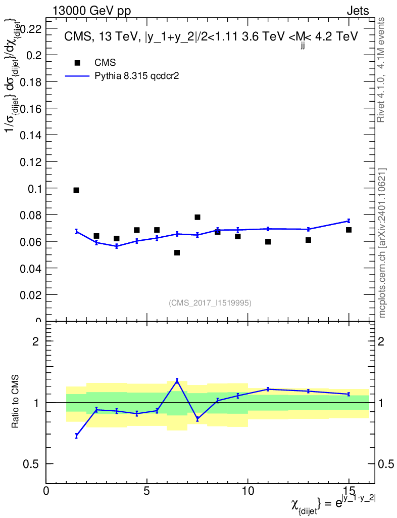 Lines: data, pythia8 8.315 qcdcr2 |