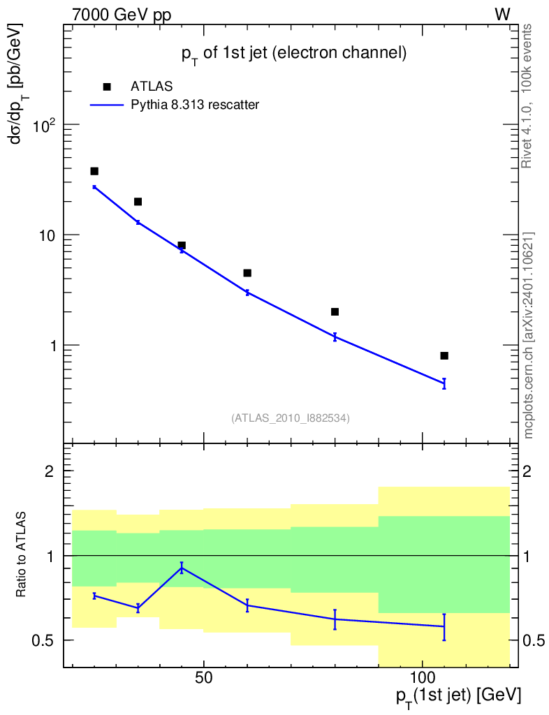 Lines: data, pythia8 8.313 rescatter |