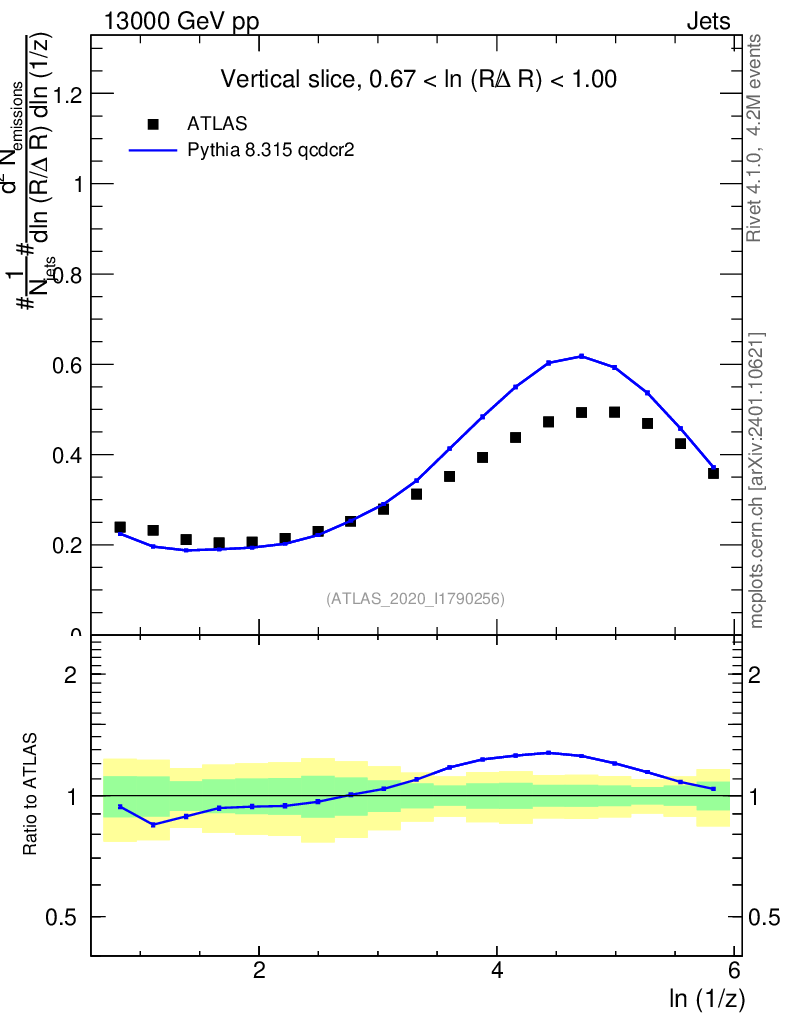Lines: data, pythia8 8.315 qcdcr2 |