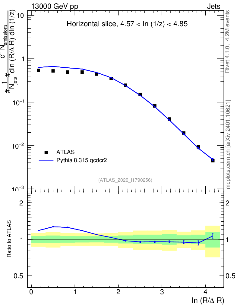 Lines: data, pythia8 8.315 qcdcr2 |