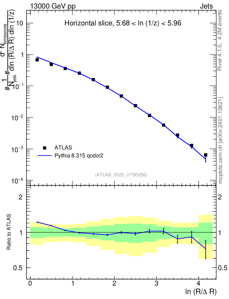 Lines: data, pythia8 8.315 qcdcr2 |