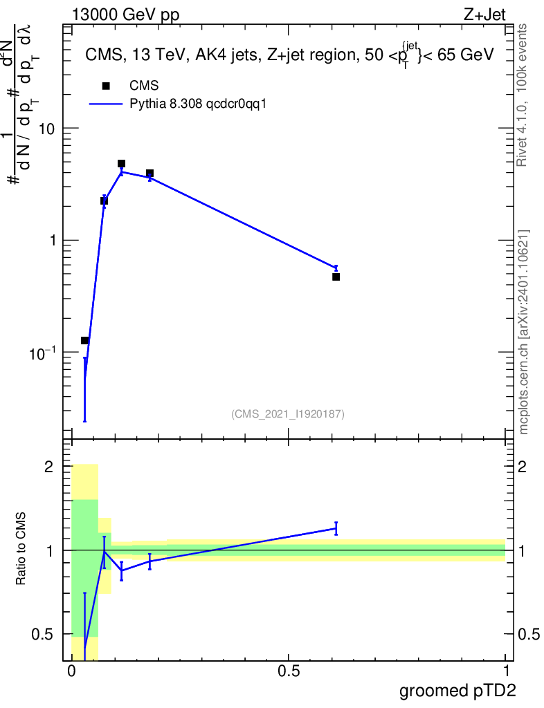 Lines: data, pythia8 8.308 qcdcr0qq1 |