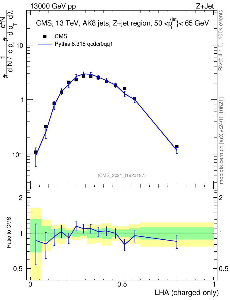 Lines: data, pythia8 8.315 qcdcr0qq1 |
