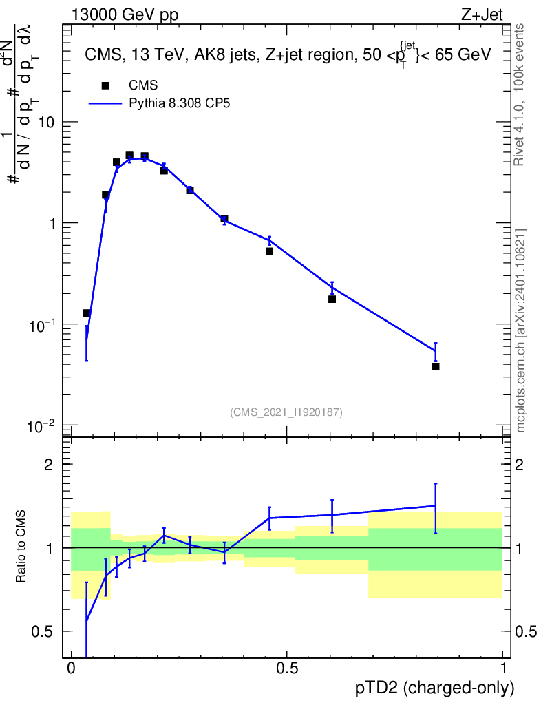 Lines: data, pythia8 8.308 CP5 |