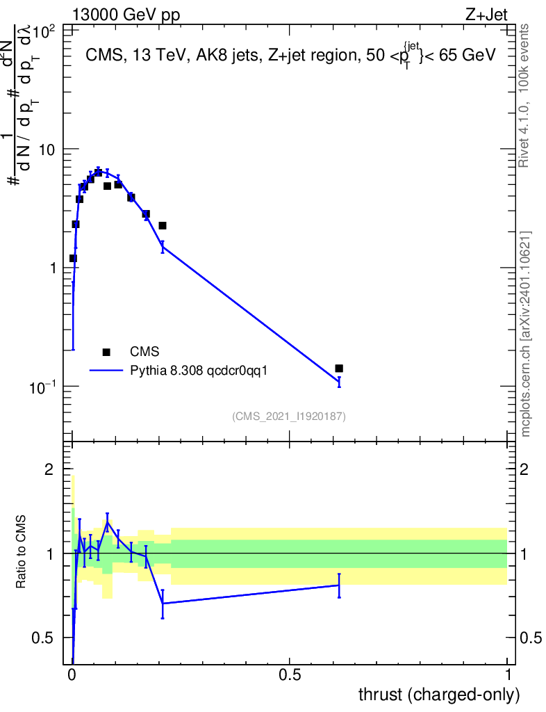 Lines: data, pythia8 8.308 qcdcr0qq1 |