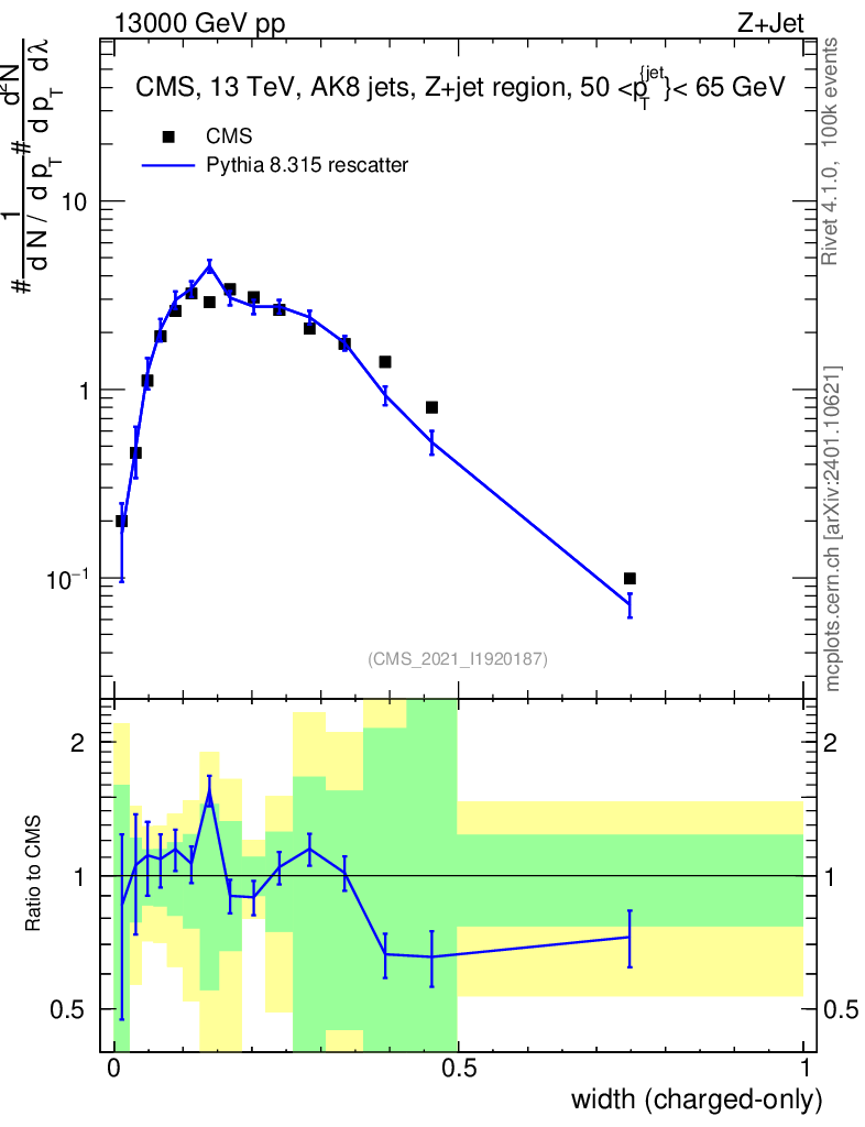 Lines: data, pythia8 8.315 rescatter |