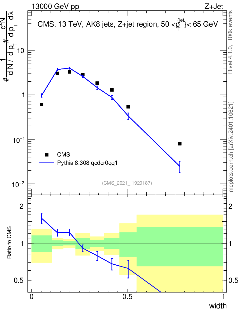 Lines: data, pythia8 8.308 qcdcr0qq1 |