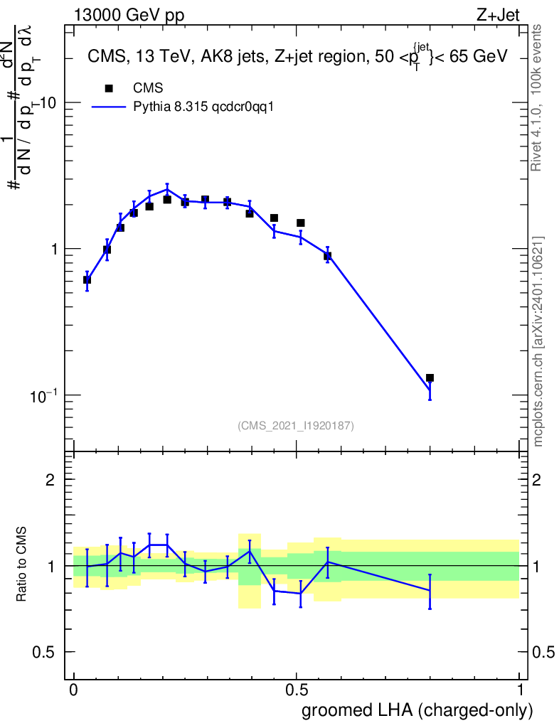 Lines: data, pythia8 8.315 qcdcr0qq1 |