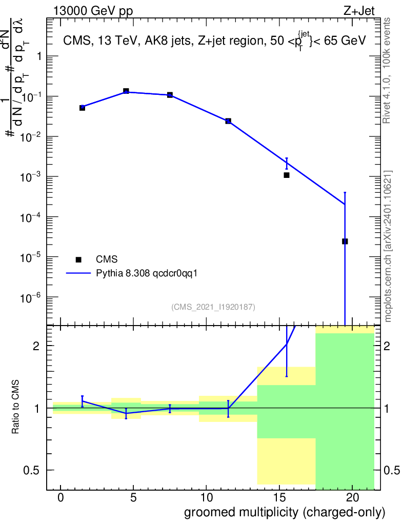 Lines: data, pythia8 8.308 qcdcr0qq1 |