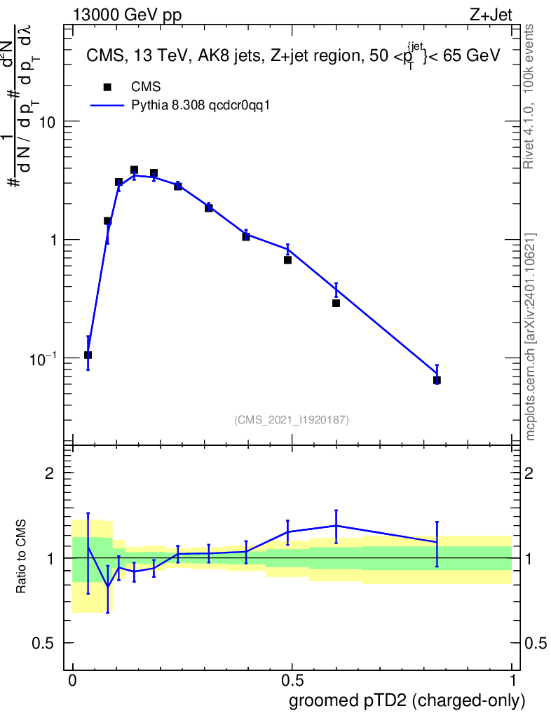 Lines: data, pythia8 8.308 qcdcr0qq1 |