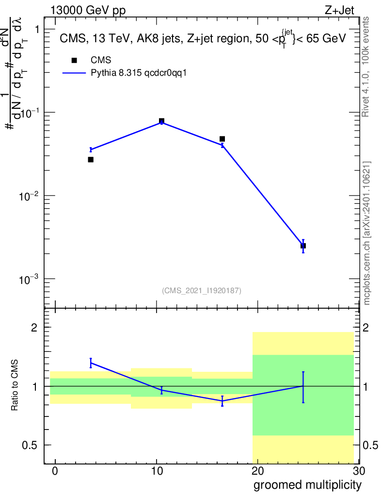 Lines: data, pythia8 8.315 qcdcr0qq1 |