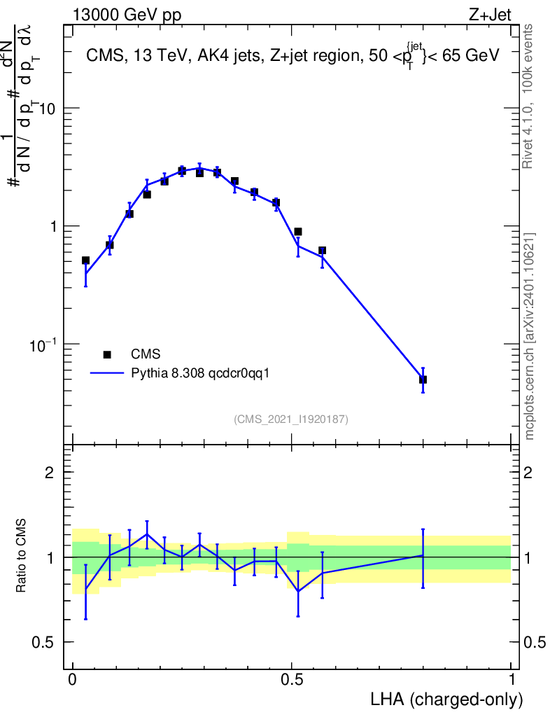 Lines: data, pythia8 8.308 qcdcr0qq1 |