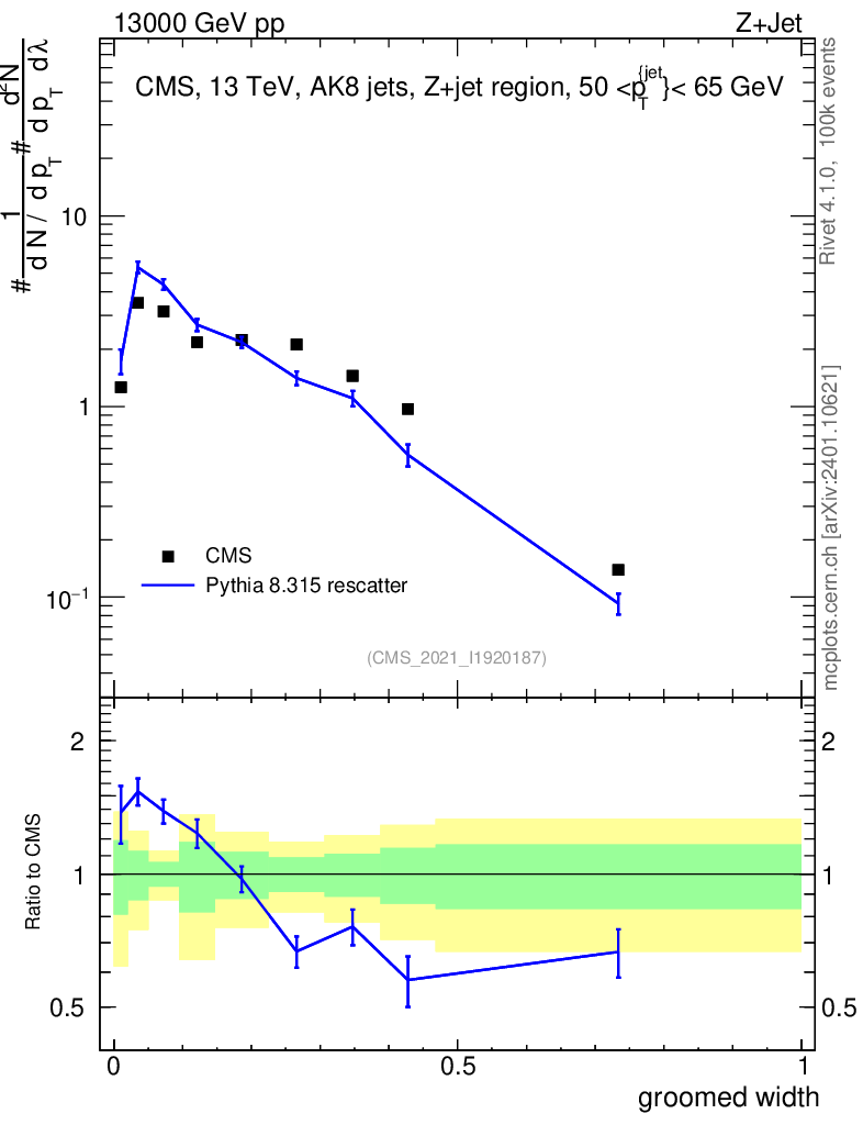 Lines: data, pythia8 8.315 rescatter |