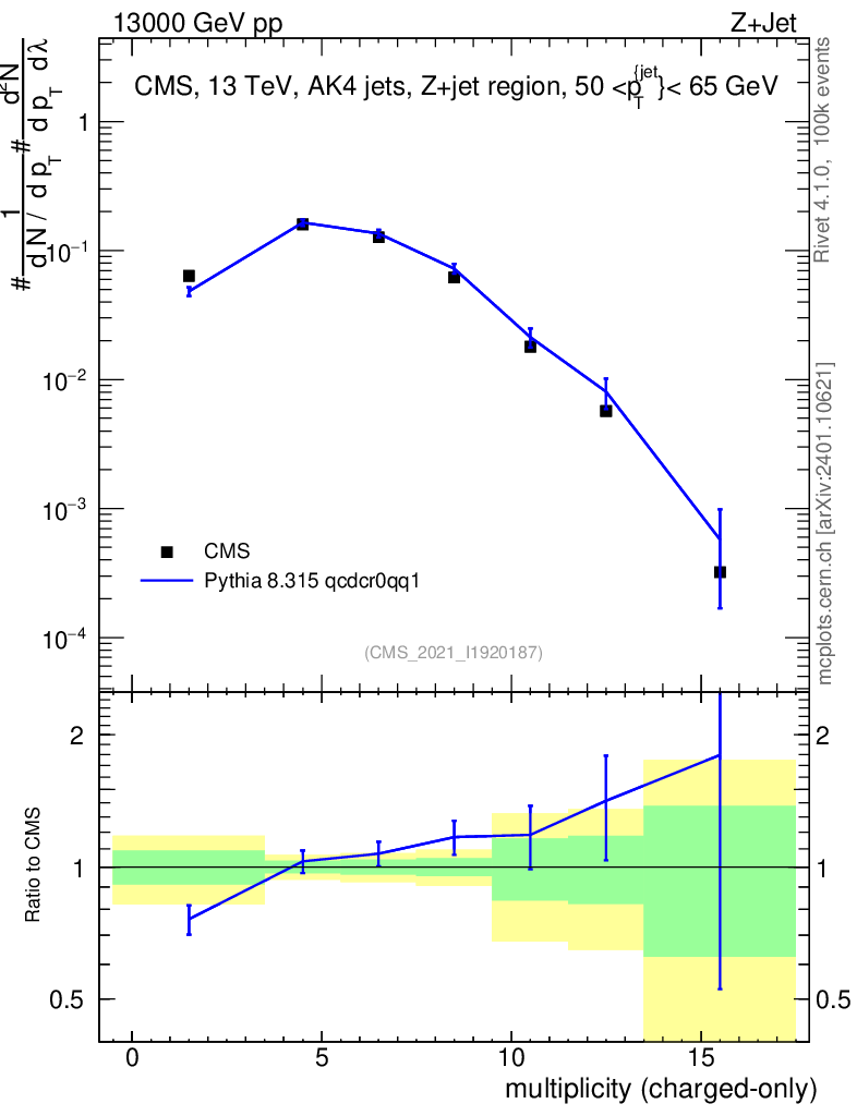 Lines: data, pythia8 8.315 qcdcr0qq1 |