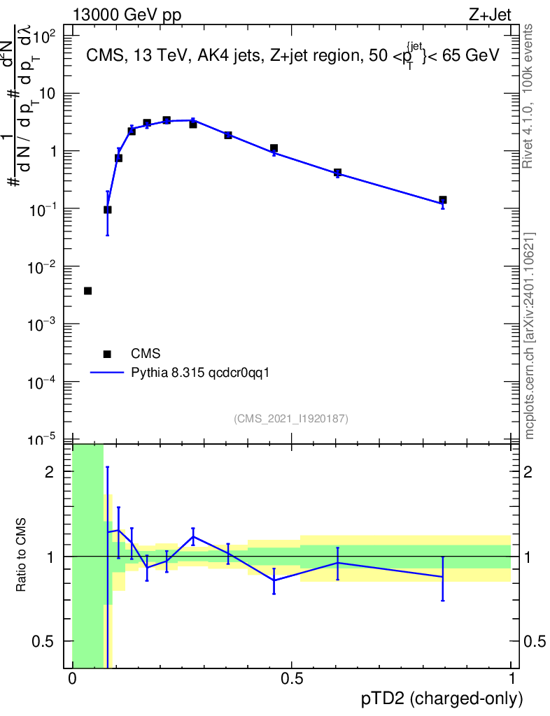 Lines: data, pythia8 8.315 qcdcr0qq1 |