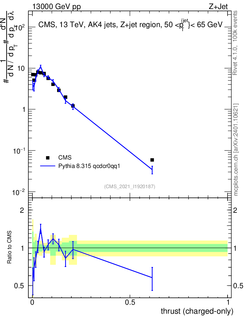 Lines: data, pythia8 8.315 qcdcr0qq1 |
