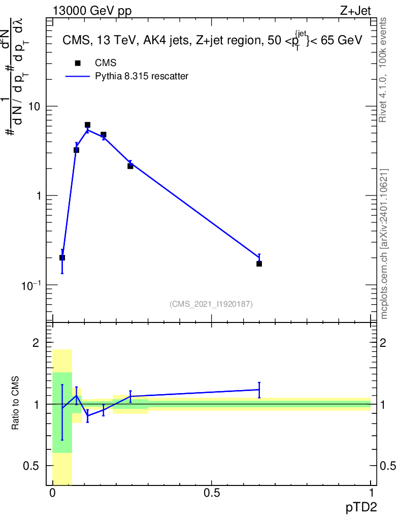 Lines: data, pythia8 8.315 rescatter |