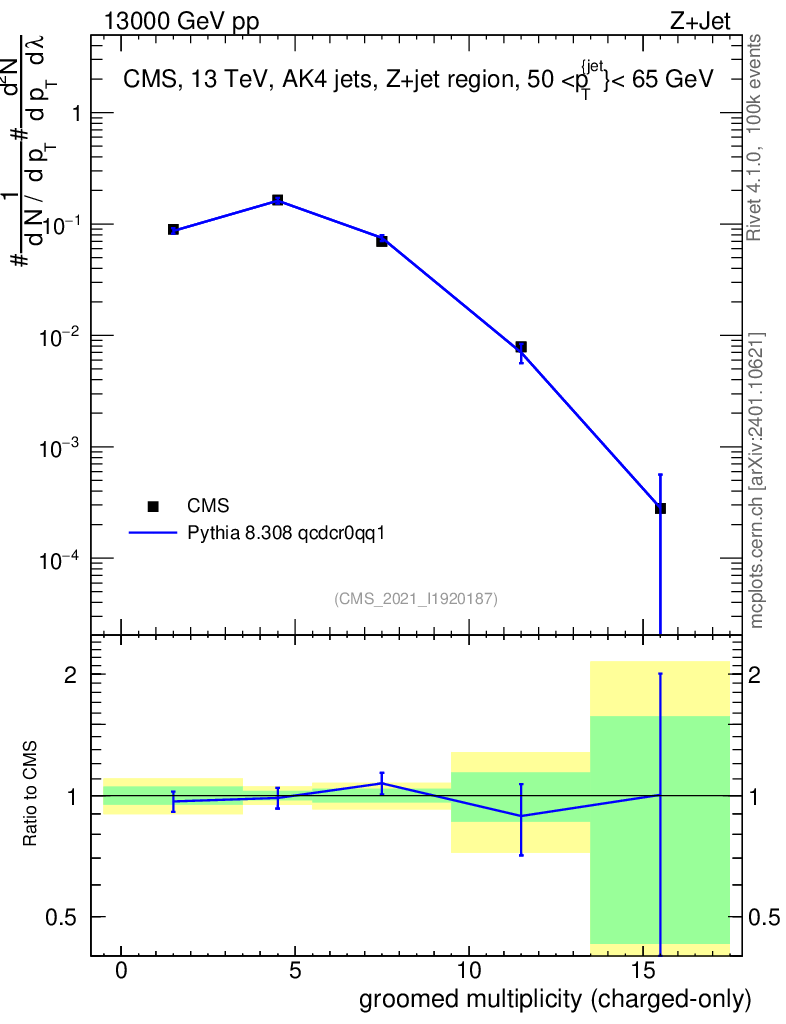 Lines: data, pythia8 8.308 qcdcr0qq1 |