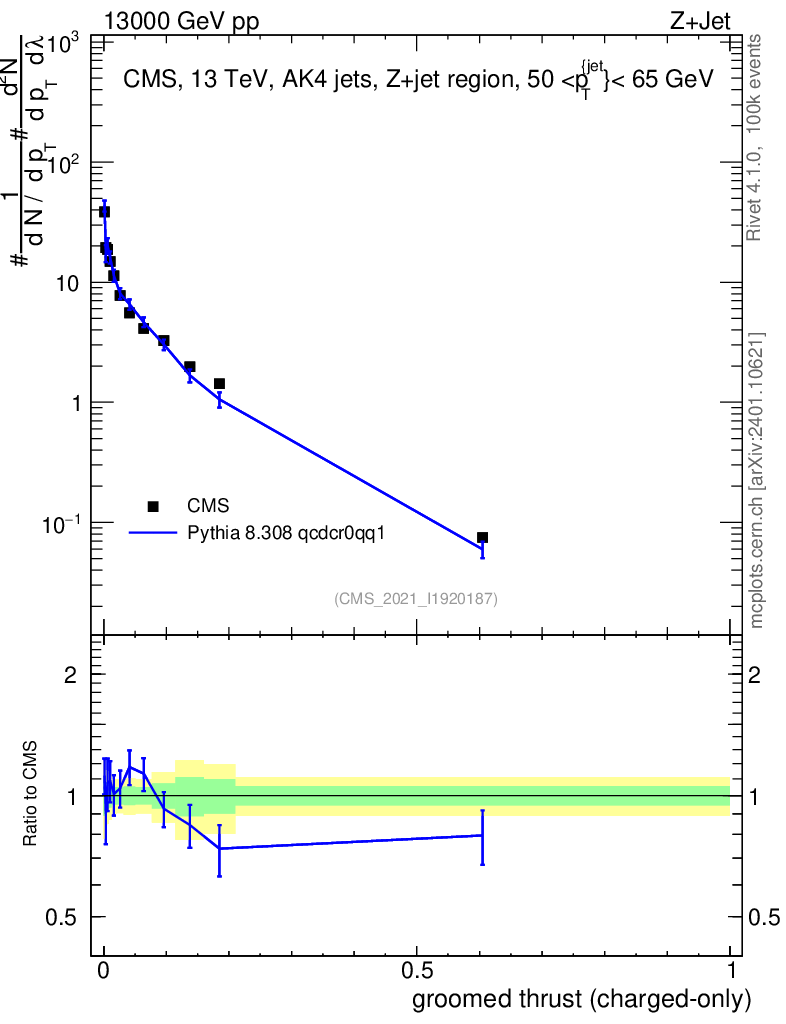 Lines: data, pythia8 8.308 qcdcr0qq1 |