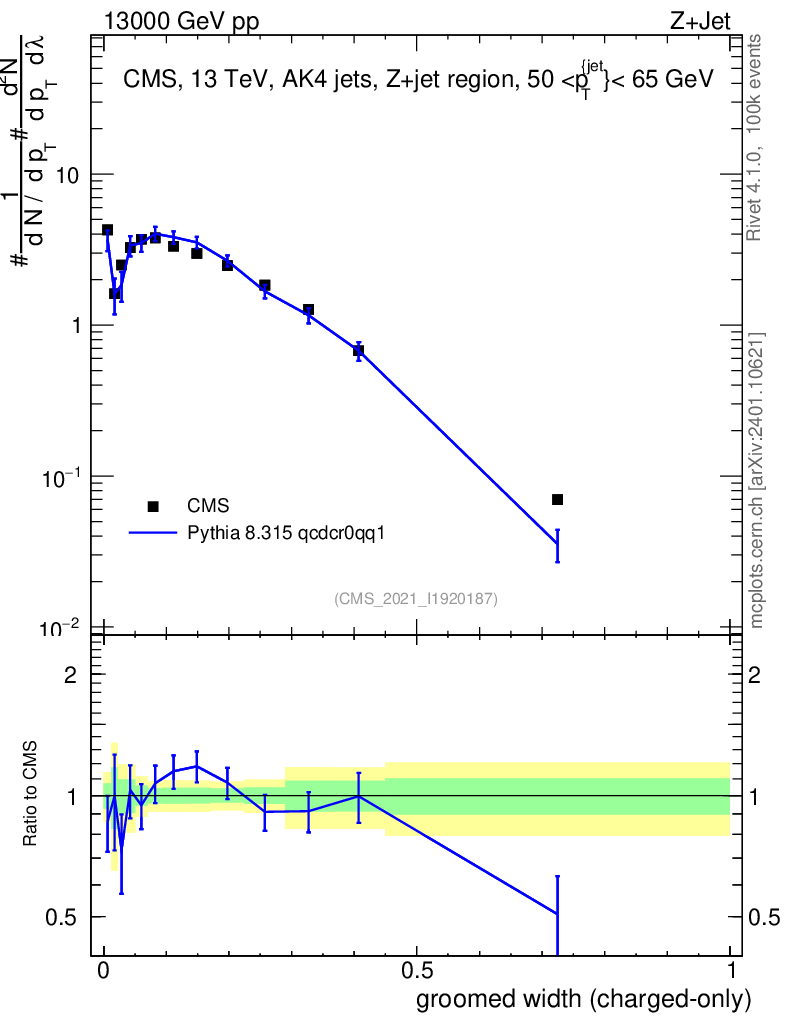 Lines: data, pythia8 8.315 qcdcr0qq1 |