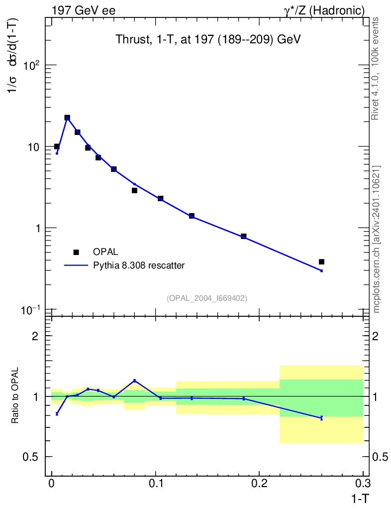 Lines: data, pythia8 8.308 rescatter |