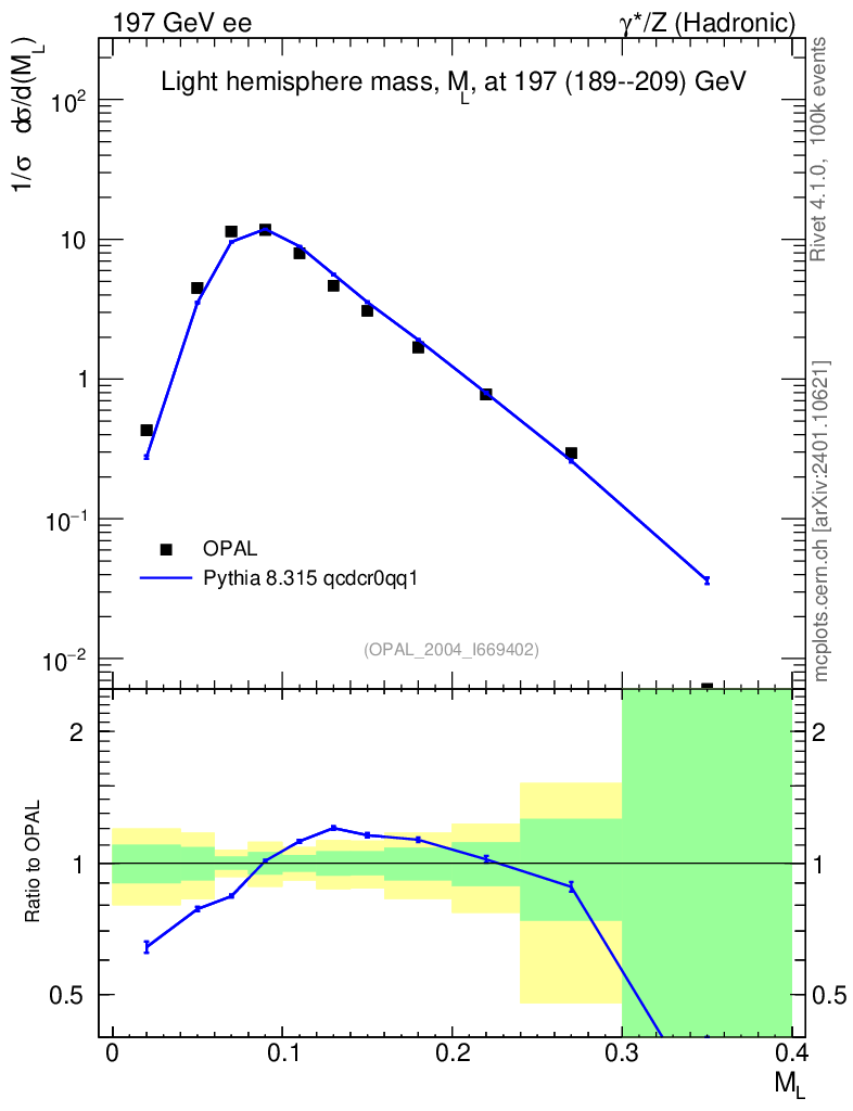 Lines: data, pythia8 8.315 qcdcr0qq1 |