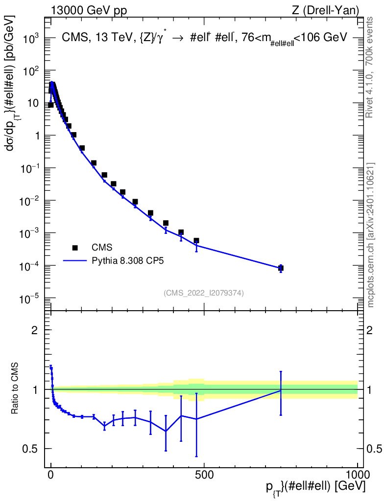 Lines: data, pythia8 8.308 CP5 |