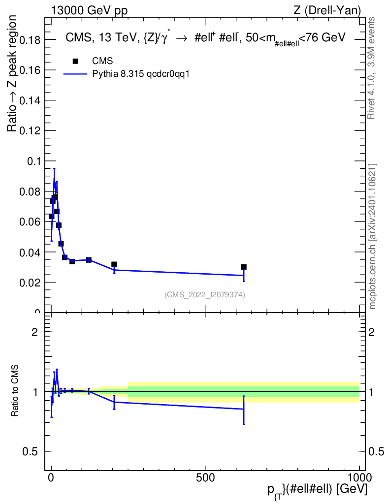 Lines: data, pythia8 8.315 qcdcr0qq1 |