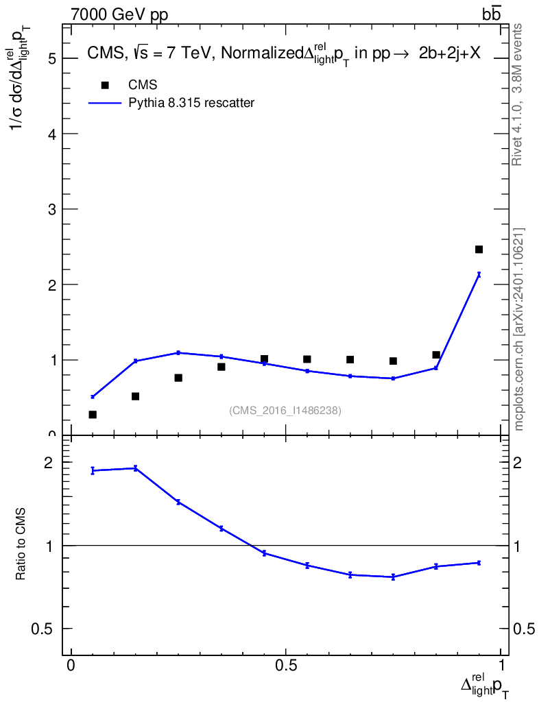 Lines: data, pythia8 8.315 rescatter |