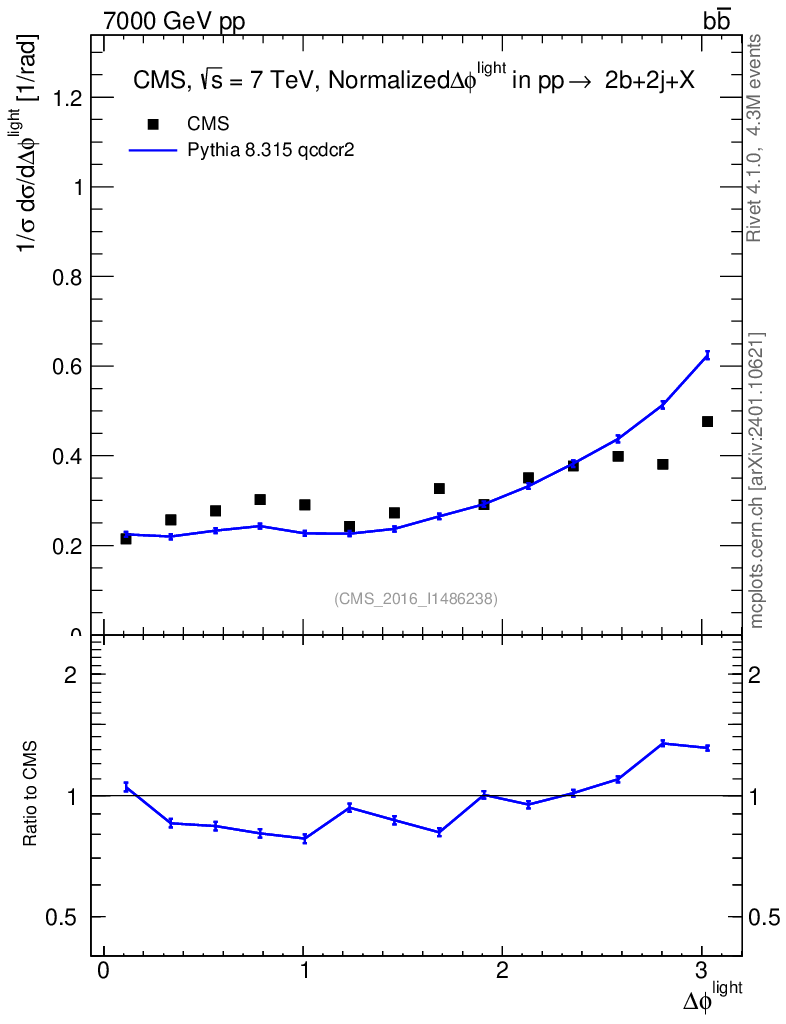Lines: data, pythia8 8.315 qcdcr2 | compare with other tunes