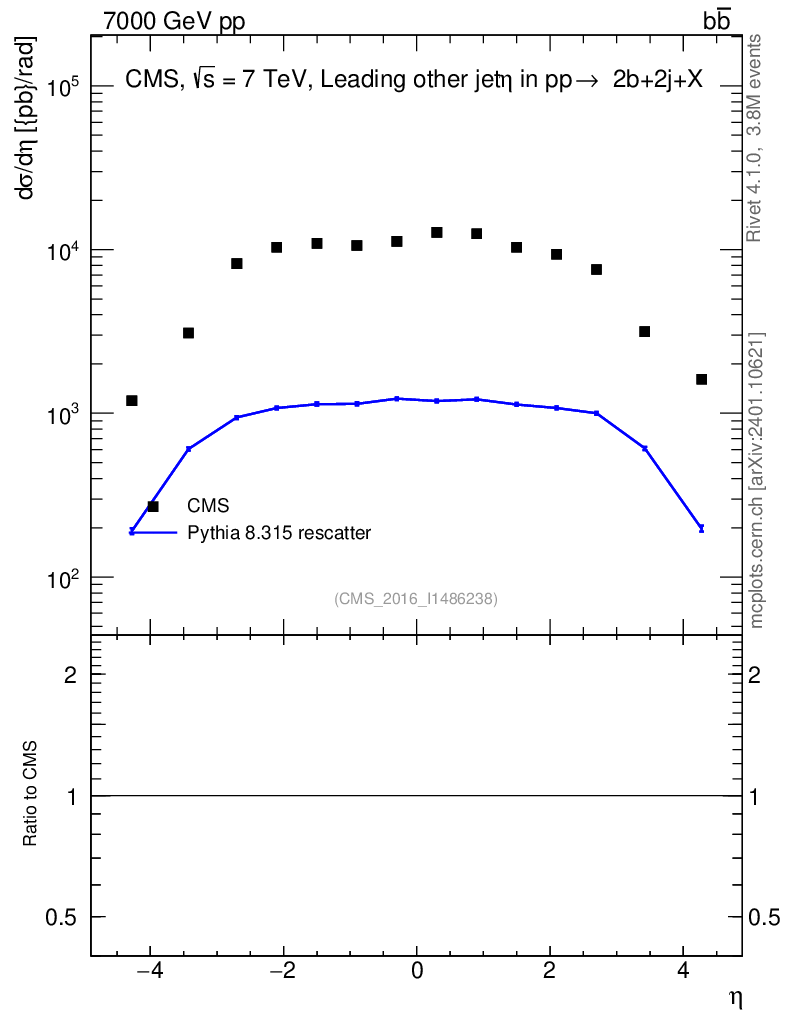 Lines: data, pythia8 8.315 rescatter |