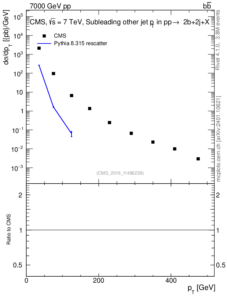 Lines: data, pythia8 8.315 rescatter |