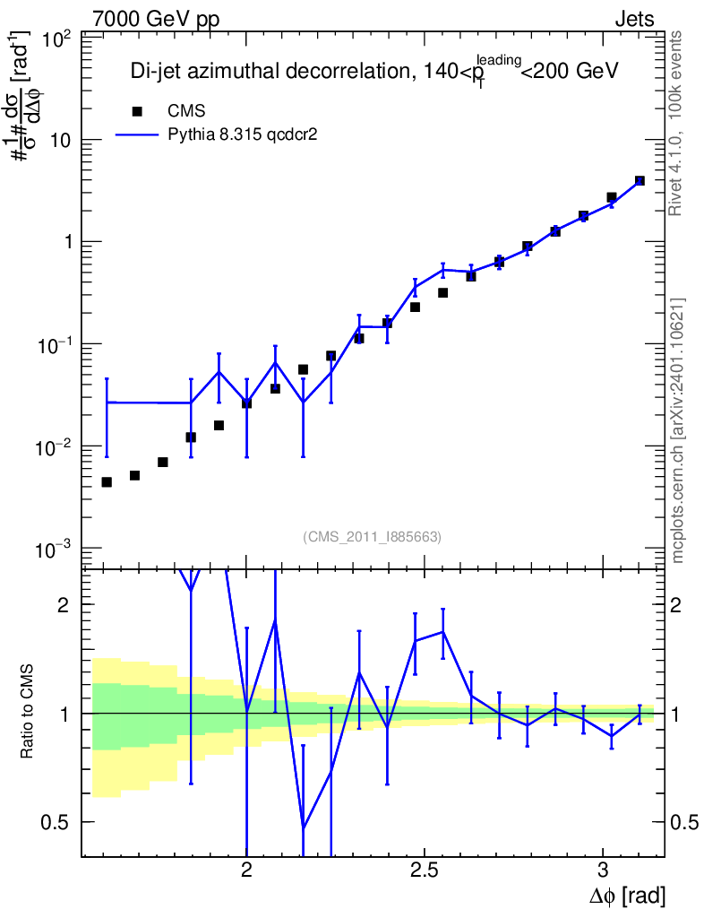 Lines: data, pythia8 8.315 qcdcr2 |