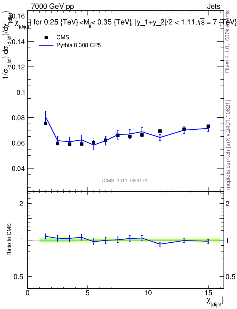 Lines: data, pythia8 8.308 CP5 |
