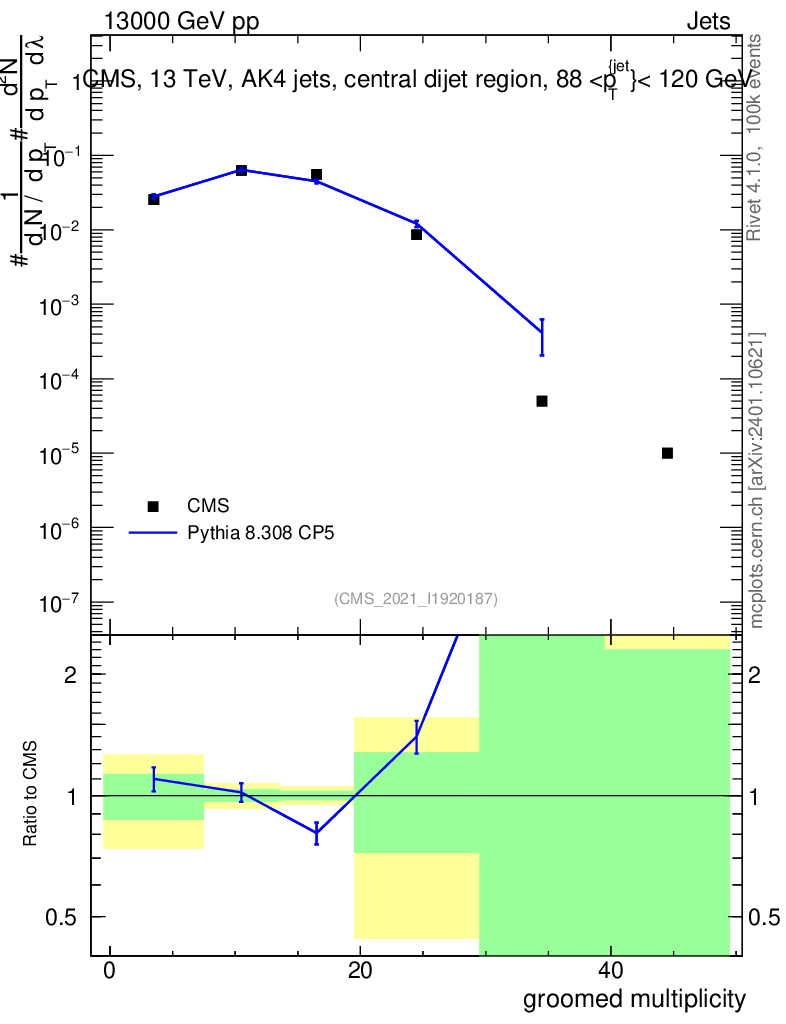 Lines: data, pythia8 8.308 CP5 |
