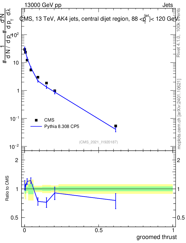 Lines: data, pythia8 8.308 CP5 |