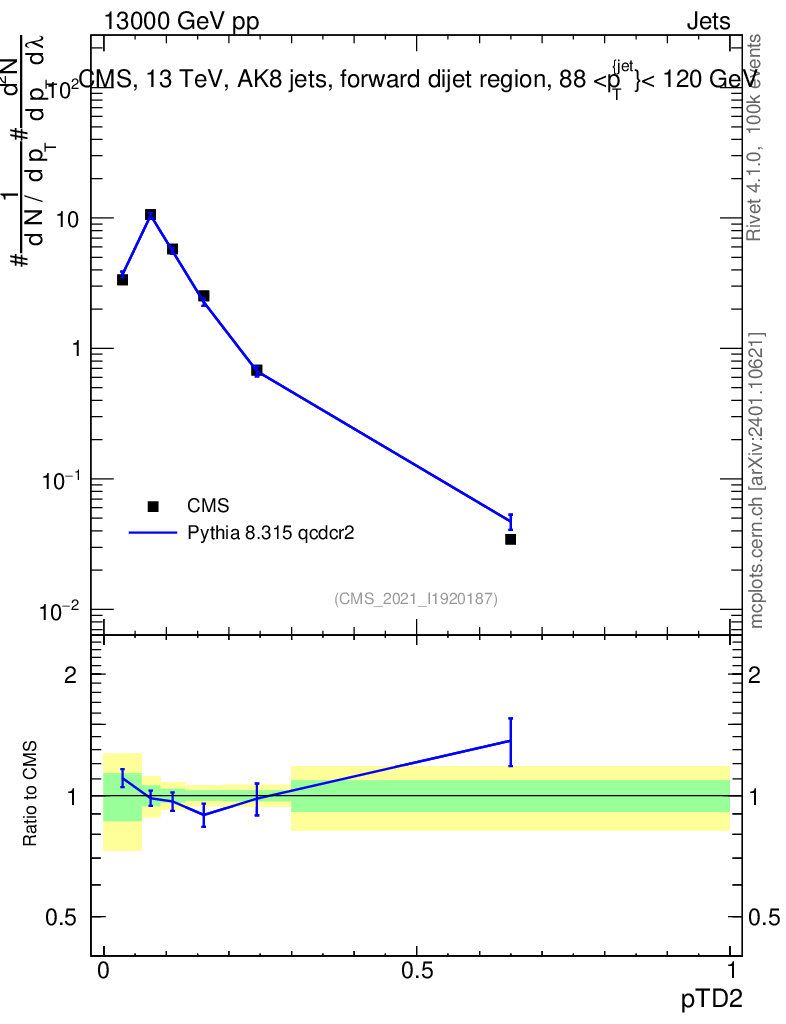 Lines: data, pythia8 8.315 qcdcr2 |