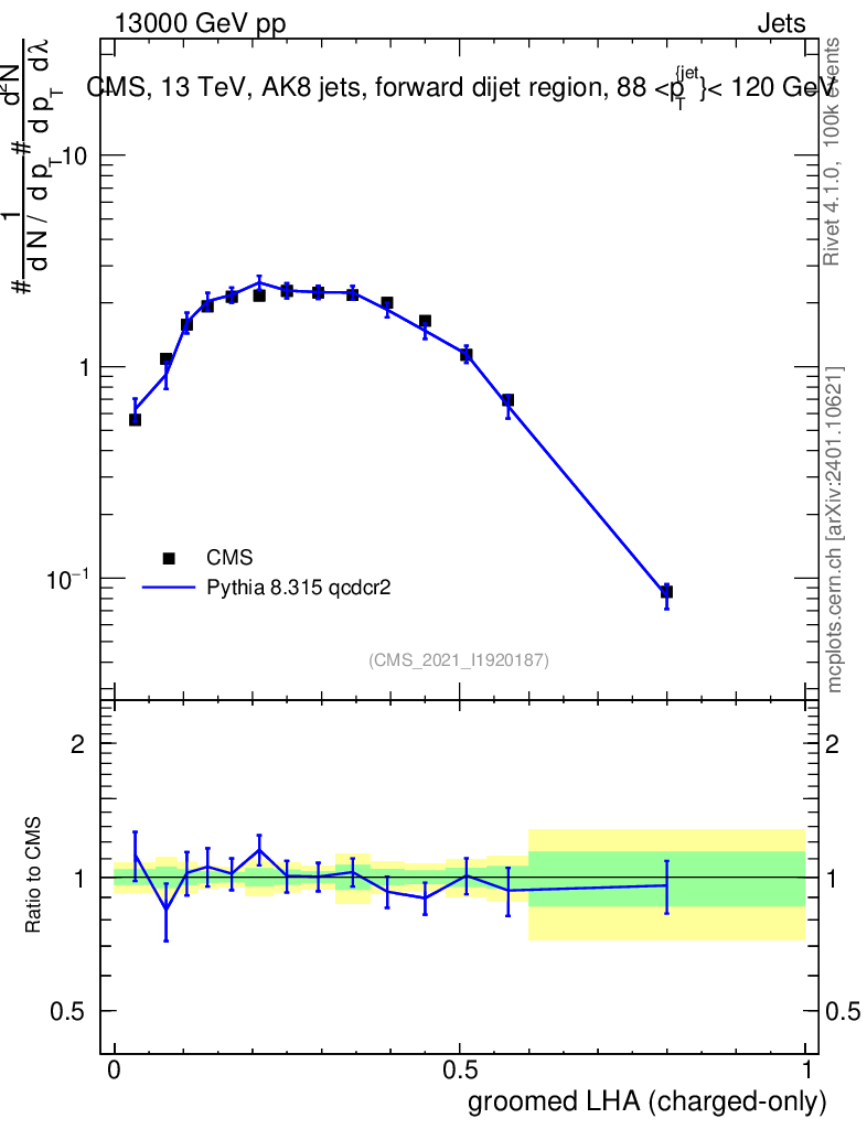 Lines: data, pythia8 8.315 qcdcr2 |