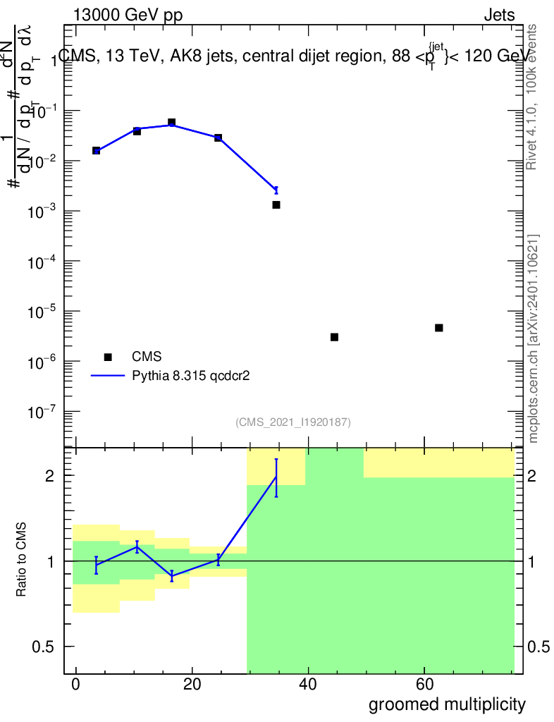 Lines: data, pythia8 8.315 qcdcr2 |