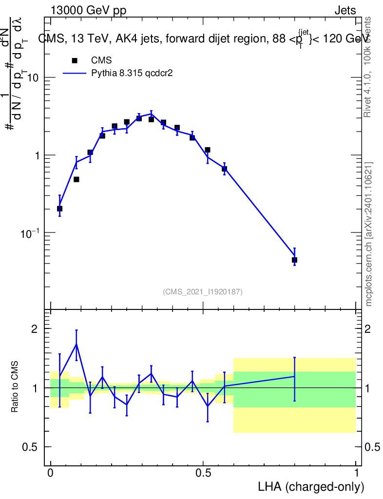 Lines: data, pythia8 8.315 qcdcr2 |