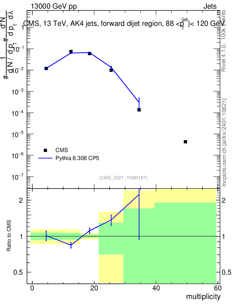 Lines: data, pythia8 8.308 CP5 |