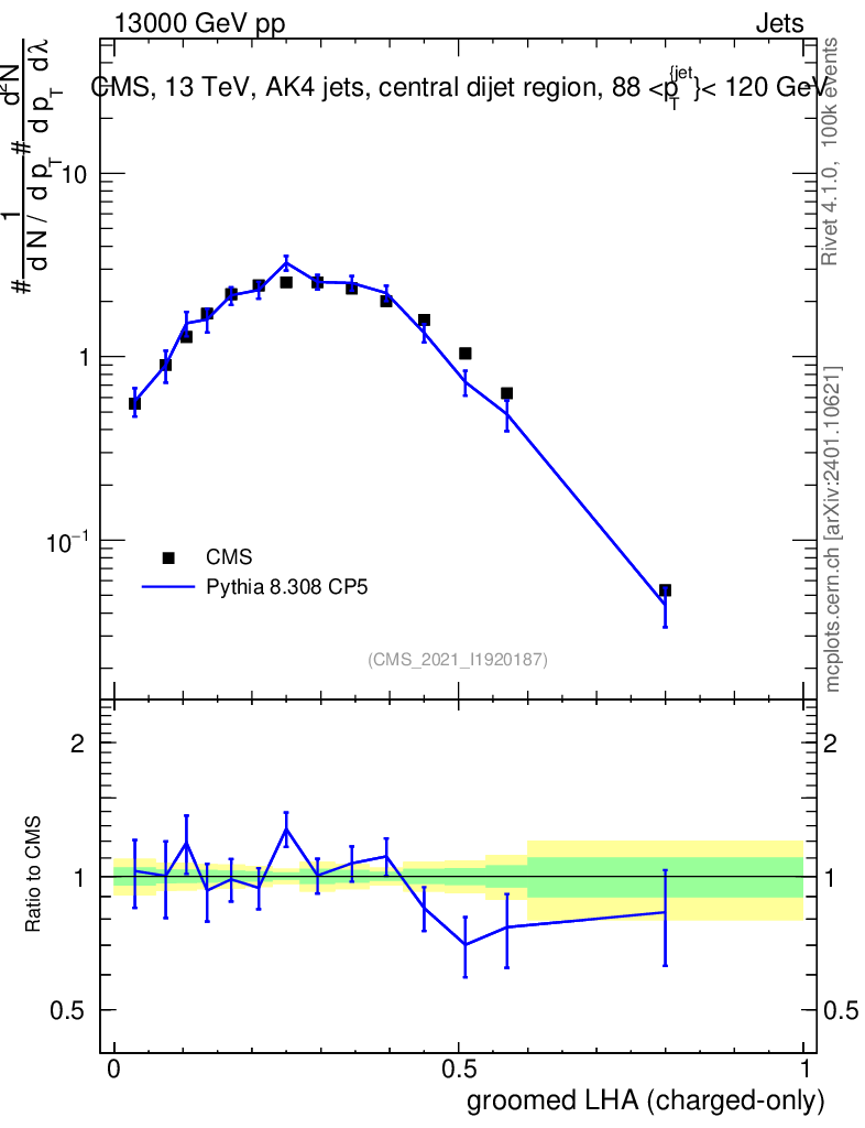 Lines: data, pythia8 8.308 CP5 |